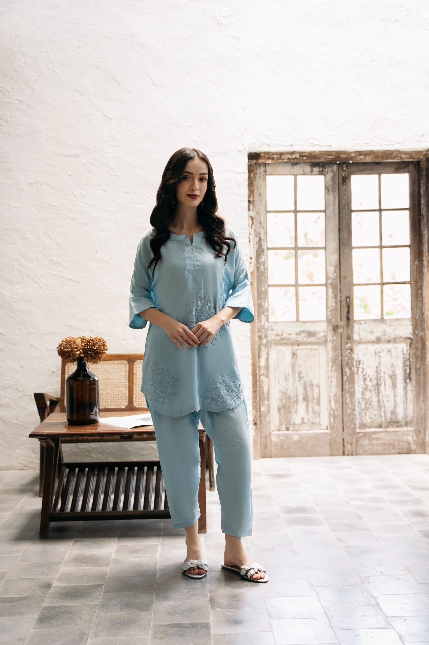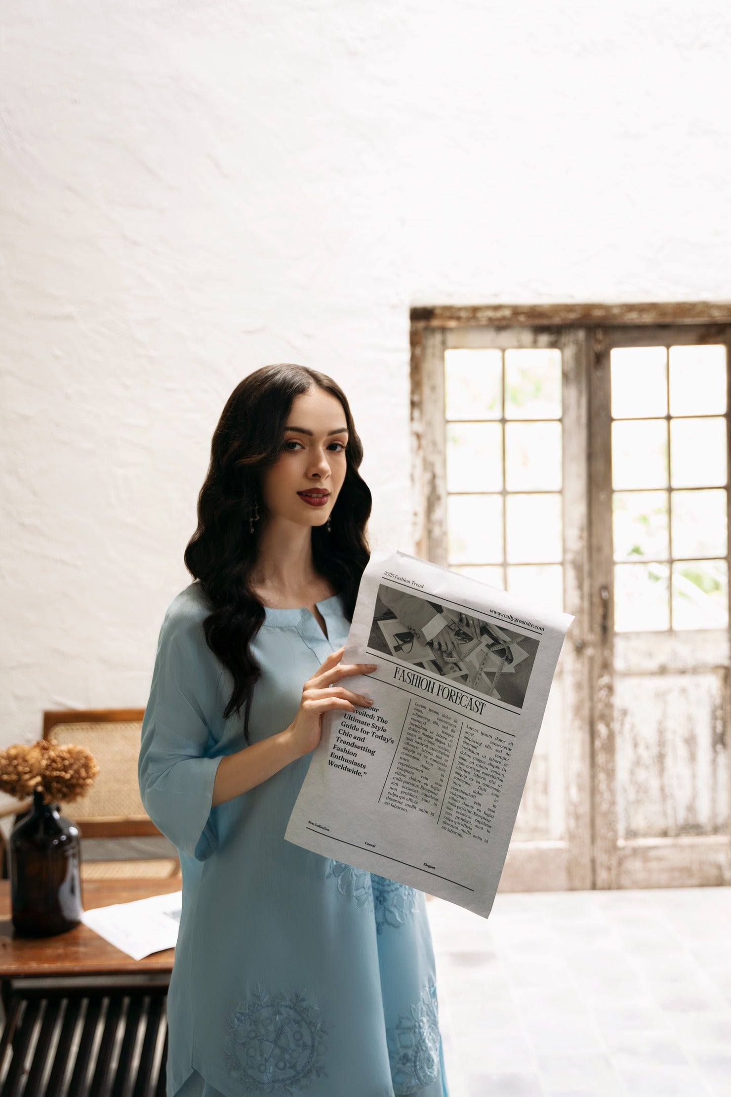 Introducing the Morning Sky from our Casuals Collection—a serene and stylish choice for your wardrobe. This short shirt, complemented by a shalwar, showcases beautiful embroidery that evokes a sense of calm and freshness. It’s the ultimate piece for a chic and effortless look.
